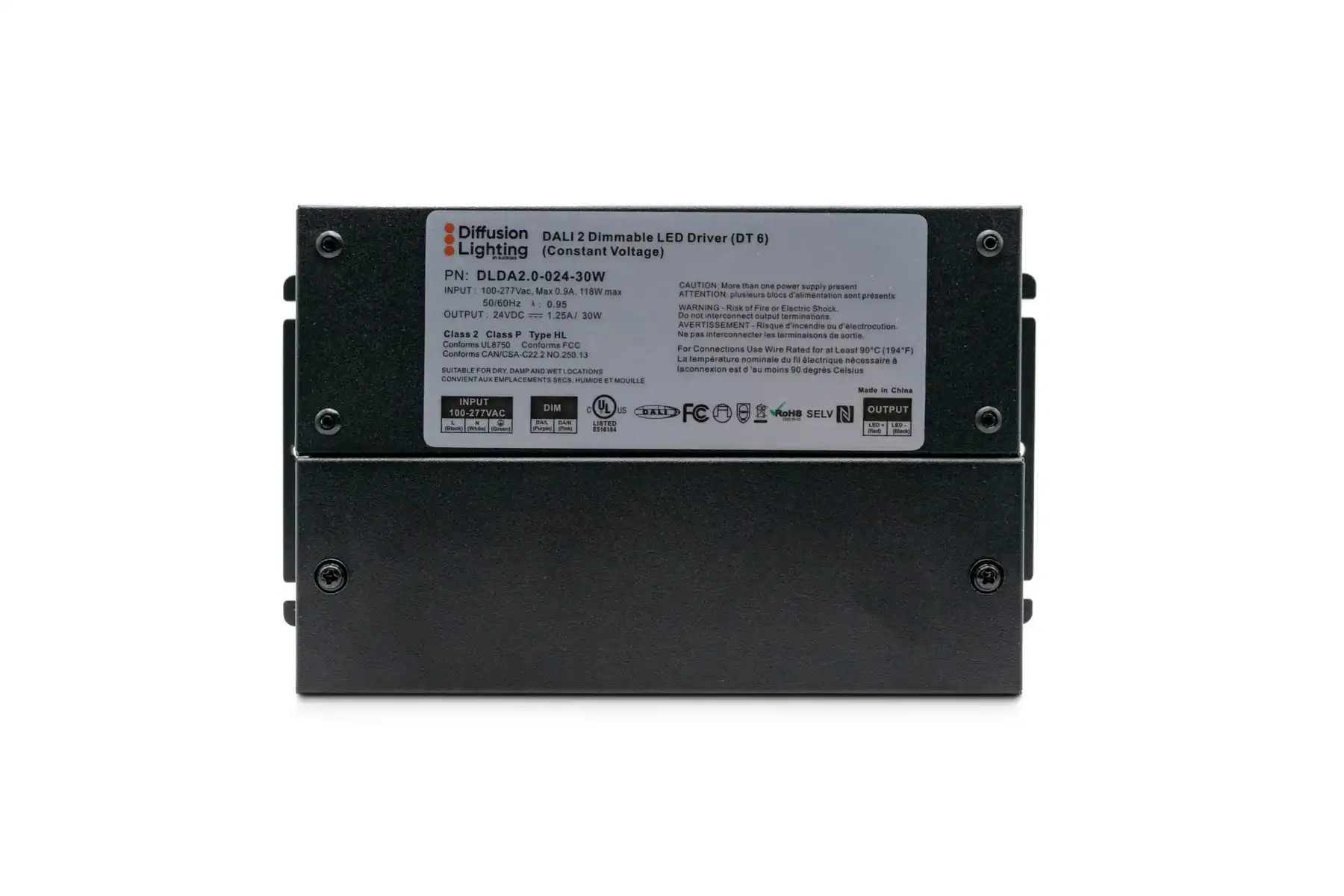 The Diffusion DLDA 2.0-024 Driver is a DALI 2.0 compliant, IP67 waterproof DALI dimming constant voltage electronic driver that is designed to be used indoors or outdoors. It includes a metal enclosure and is ideal for commercial and residential applications.